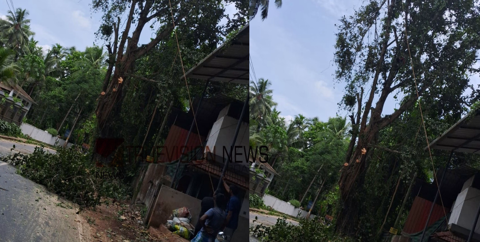 അപകട ഭീഷണി; തളീക്കര കാഞ്ഞിരോളിയിൽ തണൽ മരം മുറിച്ചുമാറ്റുന്നു