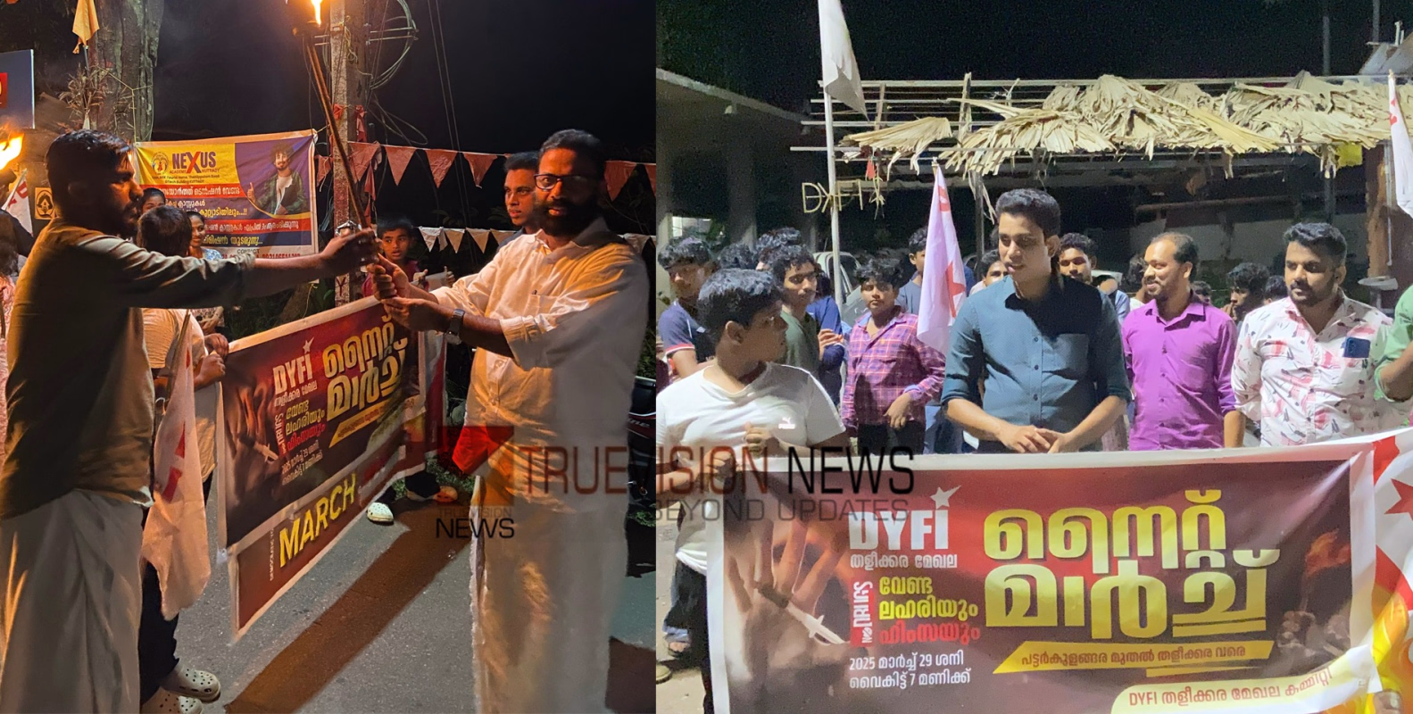 വേണ്ട ഹിംസയും ലഹരിയും; നൈറ്റ് മാർച്ച് സംഘടിപ്പിച്ച് ഡിവൈഎഫ്ഐ തളീക്കര മേഖല കമ്മിറ്റി